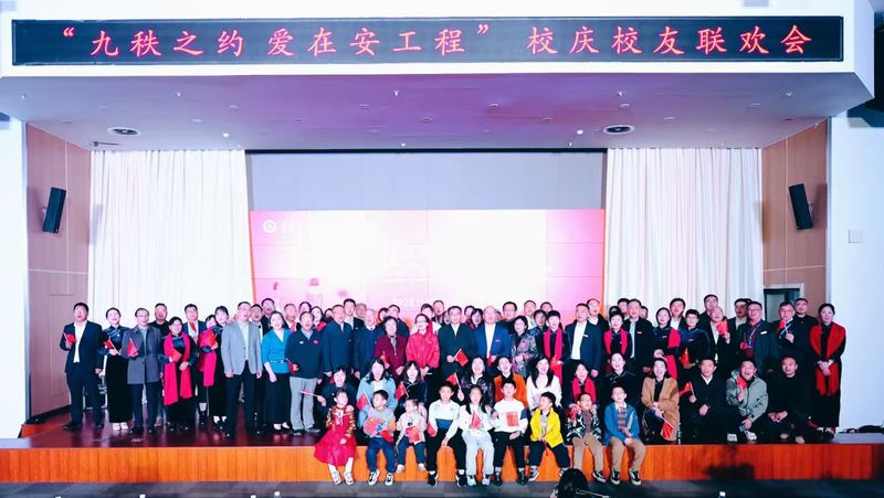 校友联欢晚会上,暖场环节播放的学校宣传片与校友伉俪照片集锦,瞬间将大家带回青涩的校园时光。晚会分为“缘起・青春记忆”“奋进・岁月如歌”“感恩・薪火相传”三个篇章,校友与师生联袂献艺,共同演绎着青春与岁月的交响。学校原广播站的4名校友代表声情并茂地朗诵了由校友总会创作的诗歌《九秩之约,爱在安工程》,每一个字都连接着一代人的青春。萨克斯独奏《回家》悠扬动人,舞蹈《爱》柔美灵动,歌曲串烧《校园的早晨》《一生有你》等经典曲目引发全场大合唱,地方校友会十佳歌手与大学生艺术团的精彩演绎,让台上台下融为一体,成为一片欢乐的海洋。老教师的倾情加盟,将氛围推向了高潮。