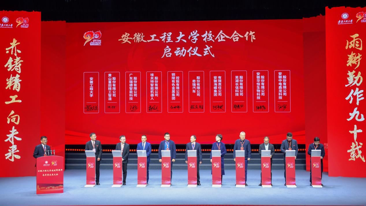 奇瑞集团、海螺集团、铜陵有色金属集团等18家行业领军企业与学校分两批进行了签约。